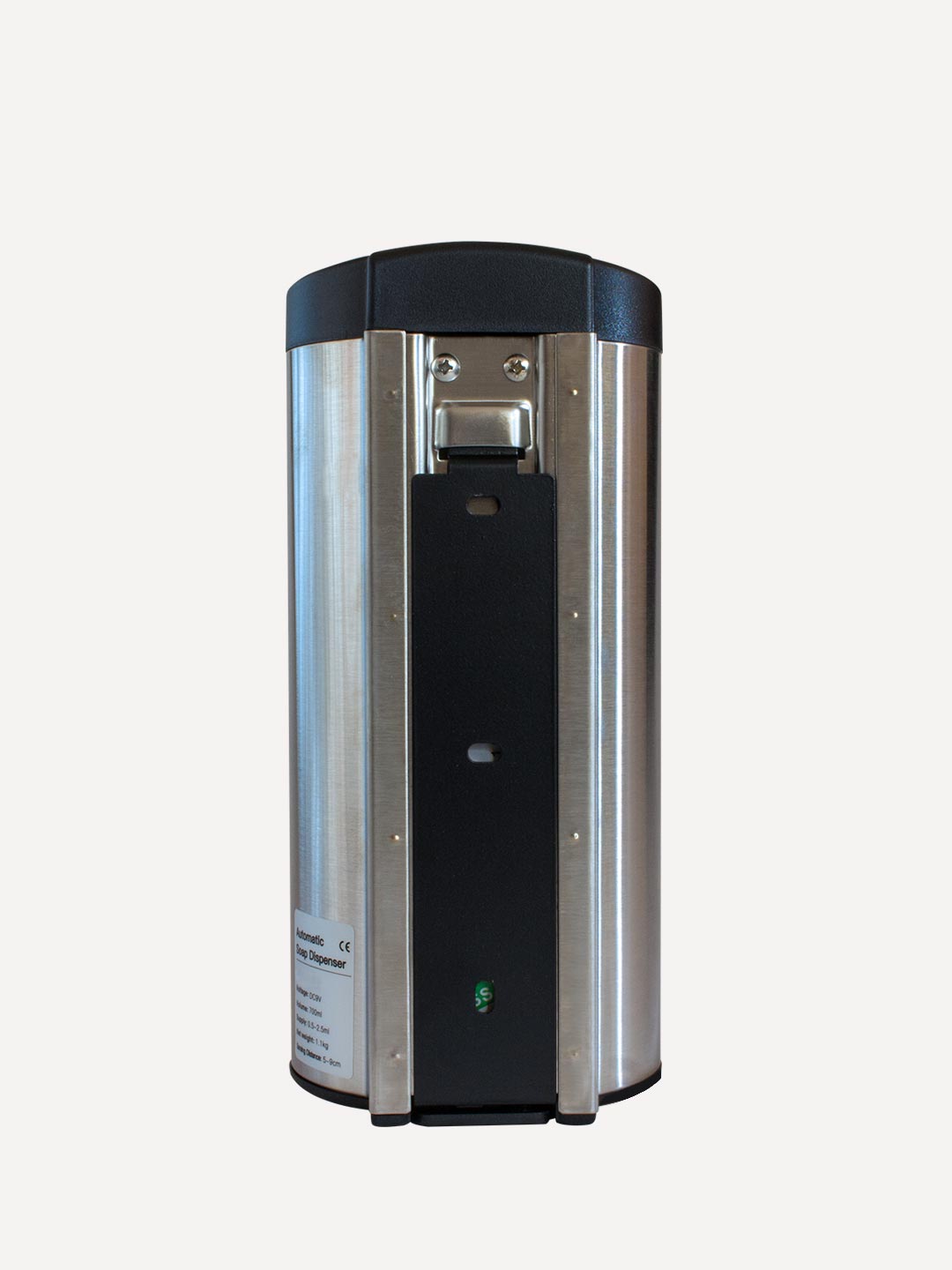 Es un dosificador de acero inoxidable automático de jabón líquido a granel que funciona también con gel sanitizante. Capacidad 700 ml. Esta jabonera puede dosificar cualquier tipo o marca de jabón líquido para manos a granel así como cualquier gel sanitizante o alcohol en gel. Su mecanismo se activa a través de un sensor que detecta cuando la persona coloca la mano a una distancia de entre 5 y 9 cm bajo el despachador. La cantidad a dosificar es programable, pudiendo dosificar: .5, 1, 1.5, 2 o 2.5 ml por disparo. Es completamente automática y utiliza 6 pilas alcalinas AA. Las pilas alcalinas pueden durar hasta 20,000 disparos aproximadamente. Cuenta con cerradura. Todos los componentes electrónicos están sellados para protegerlos de la humedad.