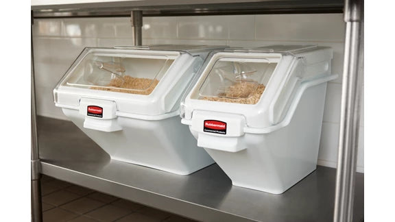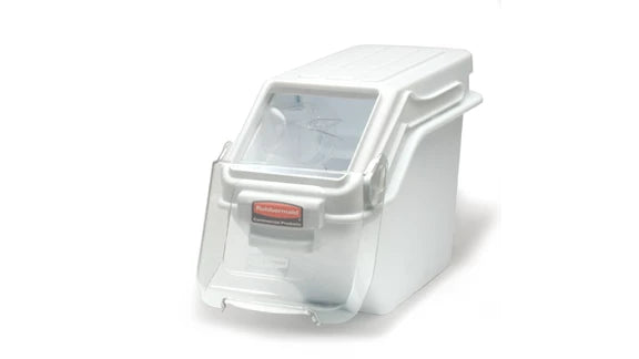 El contenedor de ingredientes con pala Rubbermaid Commercial ofrece acceso rápido con una sola mano mientras está apilado y una herramienta de medición integrada que aumenta la eficiencia de la preparación, la optimización del espacio y promueve el cumplimiento de la seguridad alimentaria.